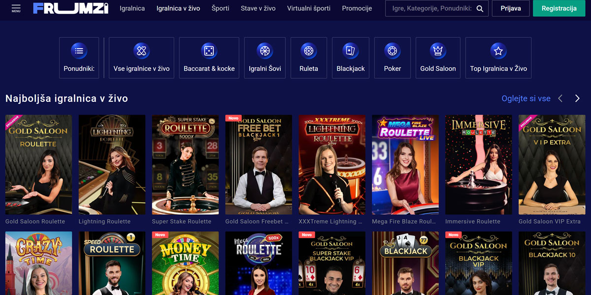 Platforma ponuja obsežno pokritost iger z več kot 12.000 igralnimi avtomati, od klasičnih bobnov do sodobnih naslovov z bogatimi funkcijami, skupaj s preko 350 iger v živo v igralnici, ki jih vodijo profesionalni krožilci. Igralci imajo dostop do ruleta v živo, blackjacka, bakarata in interaktivnih formatov oddaj v živo, kar ustvarja vzdušje igralnice v realnem času neposredno prek brskalnika. Poleg iger v igralnici Frumzi Casino vključuje tudi popolnoma integrirano stavnico, ki uporabnikom omogoča predtekmo in stave v živo na priljubljene športe brez preklapljanja računov ali stanj.