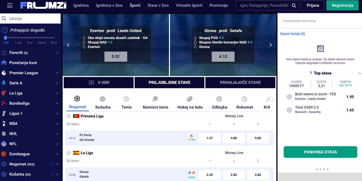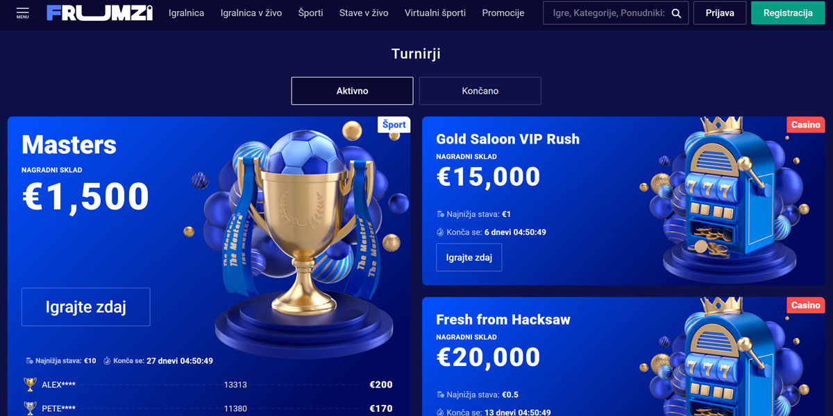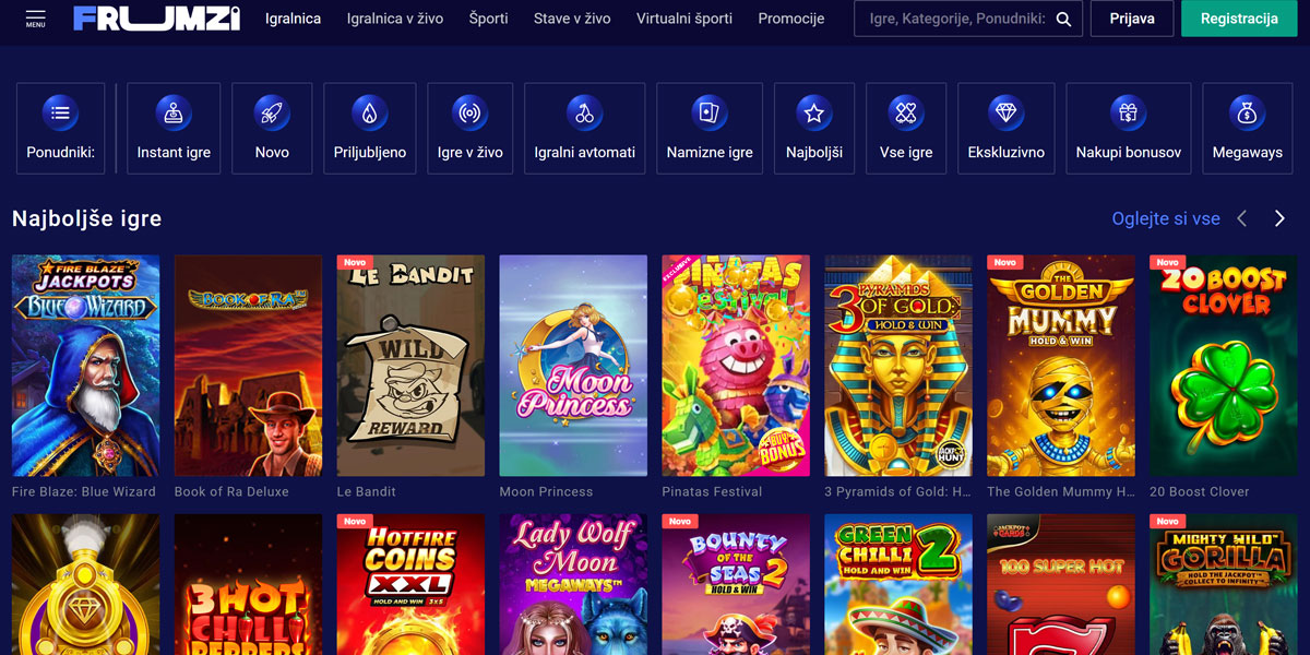 Da, Frumzi Casino vključuje stavnico, ki slovenskim igralcem omogoča predtekmo in stave v živo na priljubljene športe, odvisno od trenutne razpoložljivosti trgov.