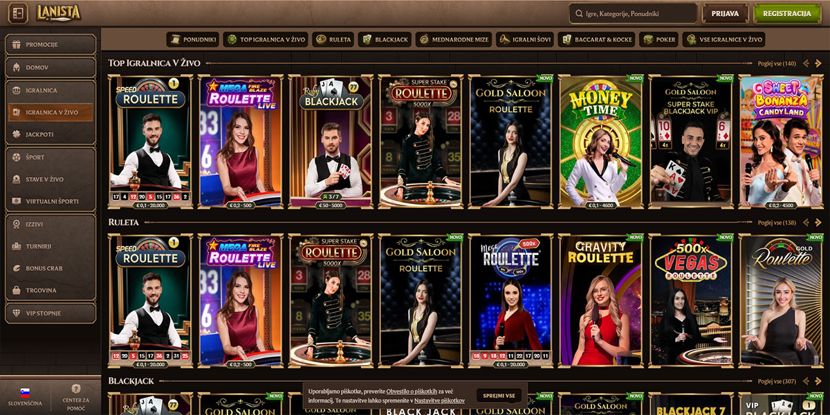 Igralnica v živo Igralnica v živo Igre v živo, ki se predvajajo iz profesionalnih studiev ali fizičnih igralnic, z živimi krupjeji in interaktivnimi miznimi igrami.