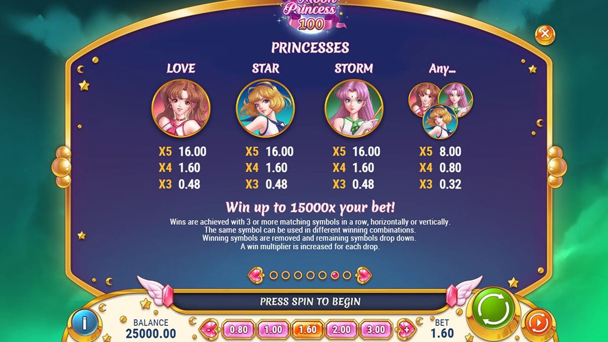 Kako deluje igralni avtomat Moon Princess 100