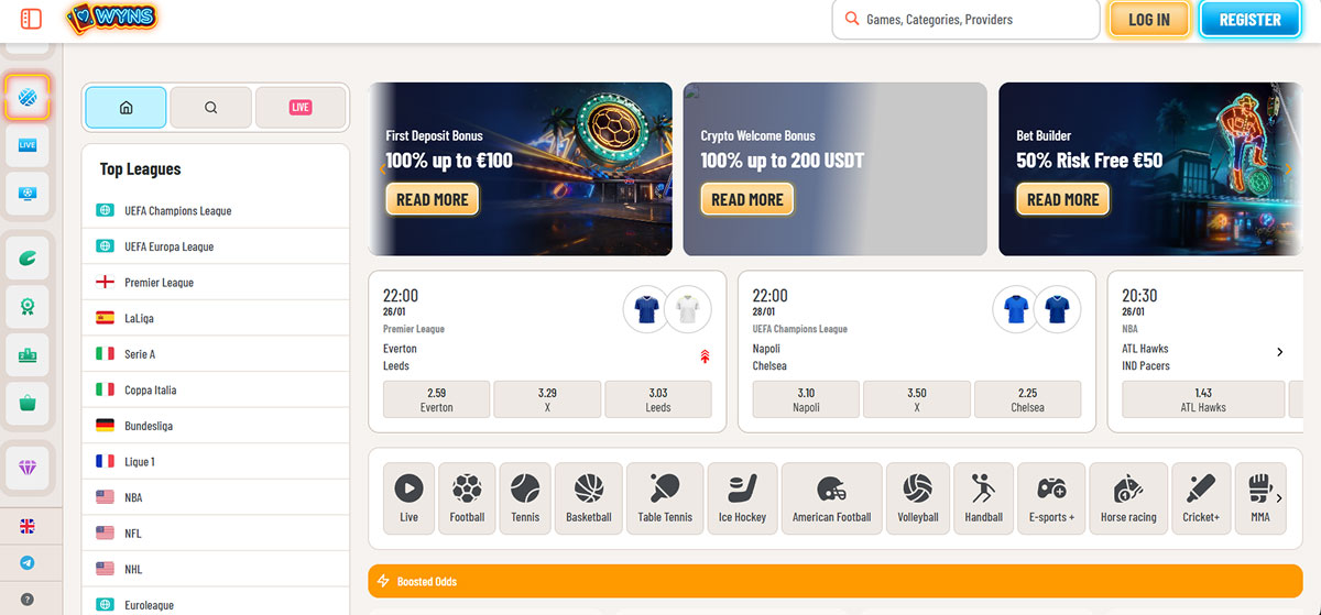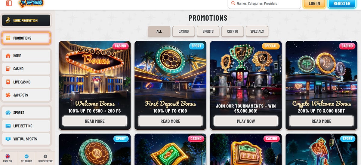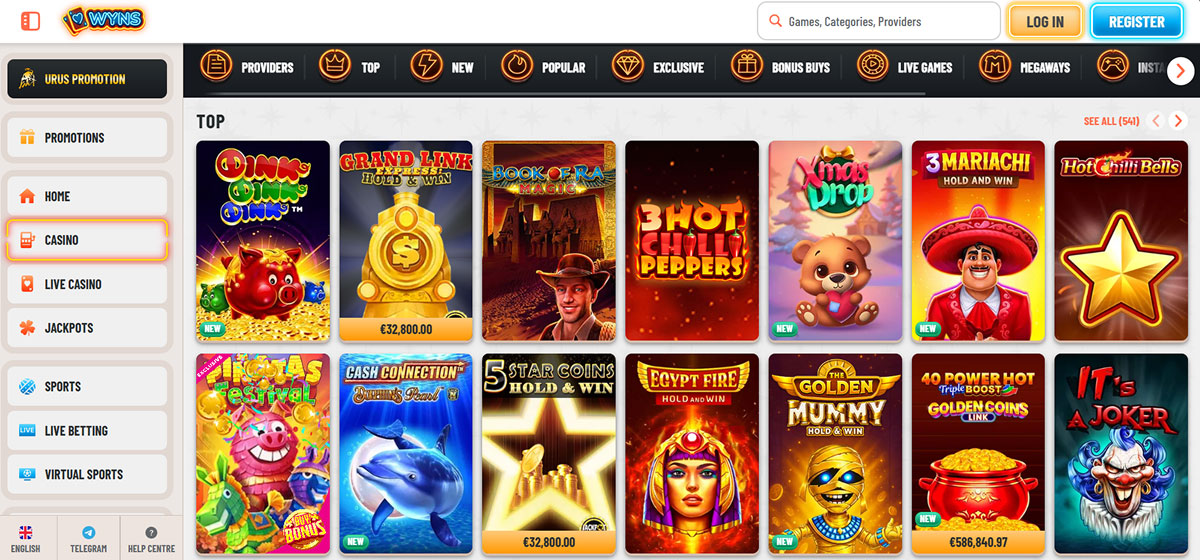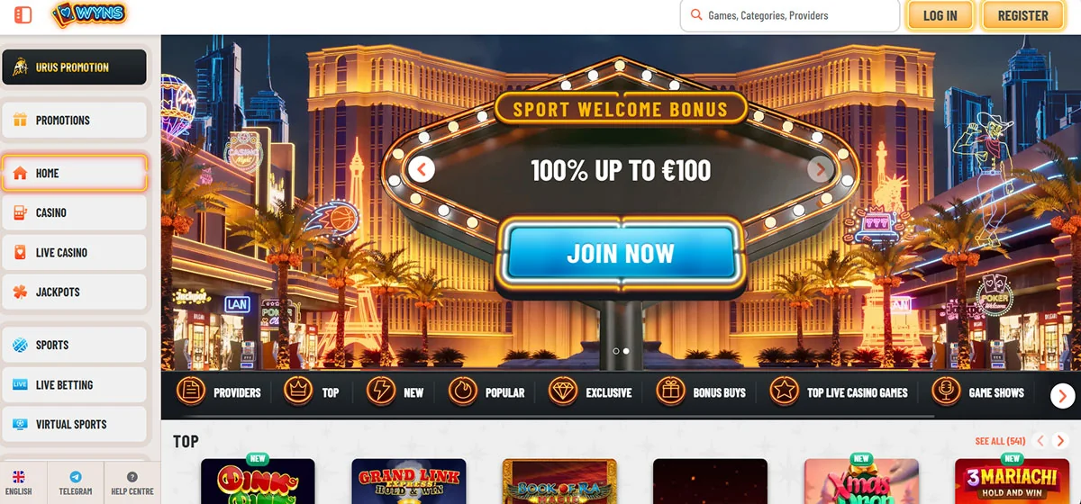 Wyns Casino je predstavljeno kot sodobno spletno igralnico in stavnico z obsežno knjižnico iger, vključno z igralnimi avtomati, igrami na živo s pravim krojalcem in športnimi stavami, ter privlačnimi dobrodošlimi bonusi in tekočimi promocijami. Podpira širok razpon plačilnih metod, vključno s kriptovalutami, ter ponuja dostop, prilagojen mobilnim napravam, in 24-urno podporo za stranke, kar igralcem olajša polog, igranje in pomoč, ko jo potrebujejo. Uporabniški vmesnik platforme je intuitiven in številne ocene poudarjajo njegovo vsestranskost in gladko navigacijo med igralniškimi in stavniškimi oddelki, kar prispeva k na splošno pozitivni igralski izkušnji.